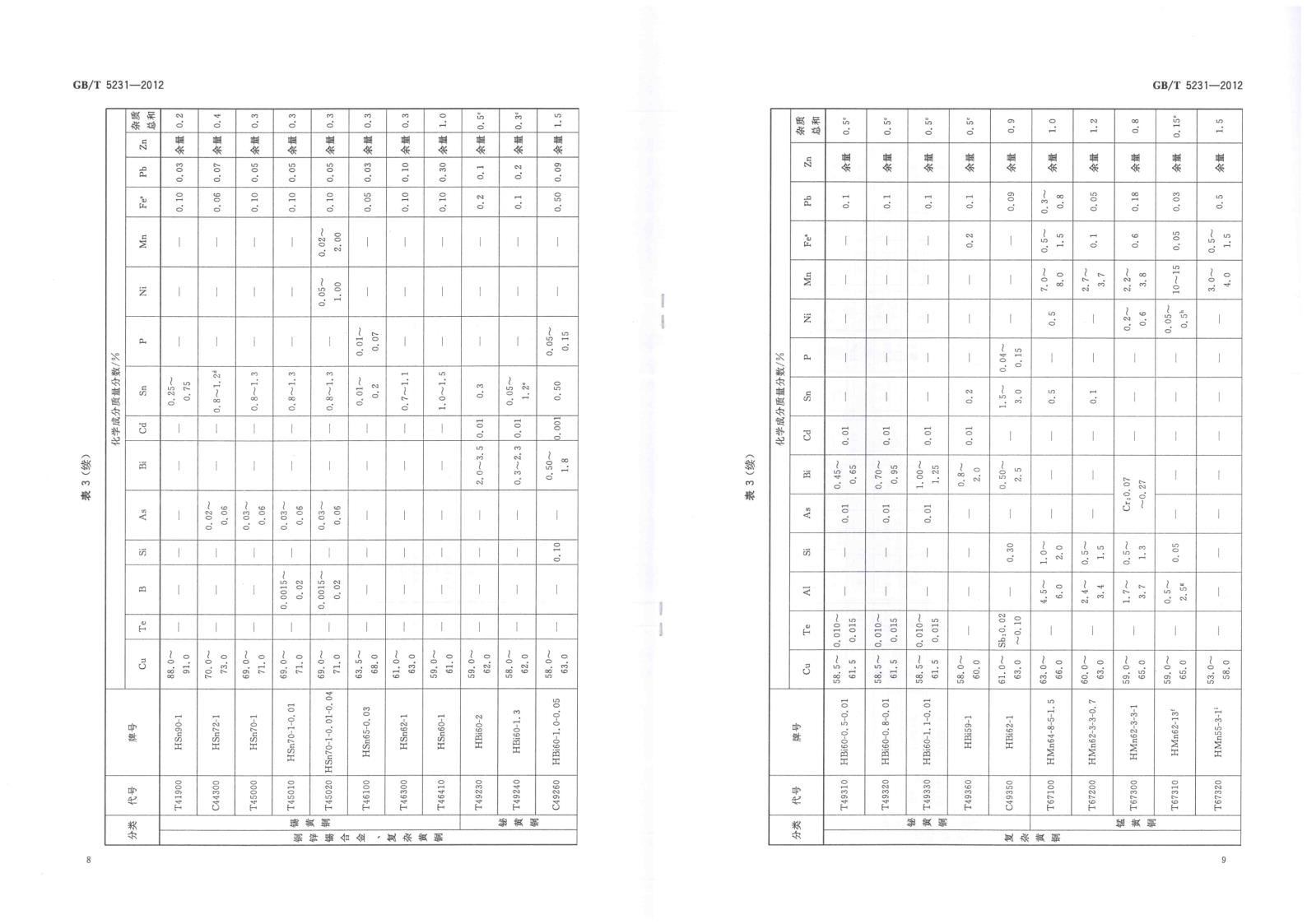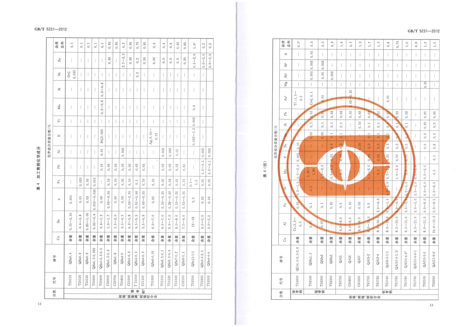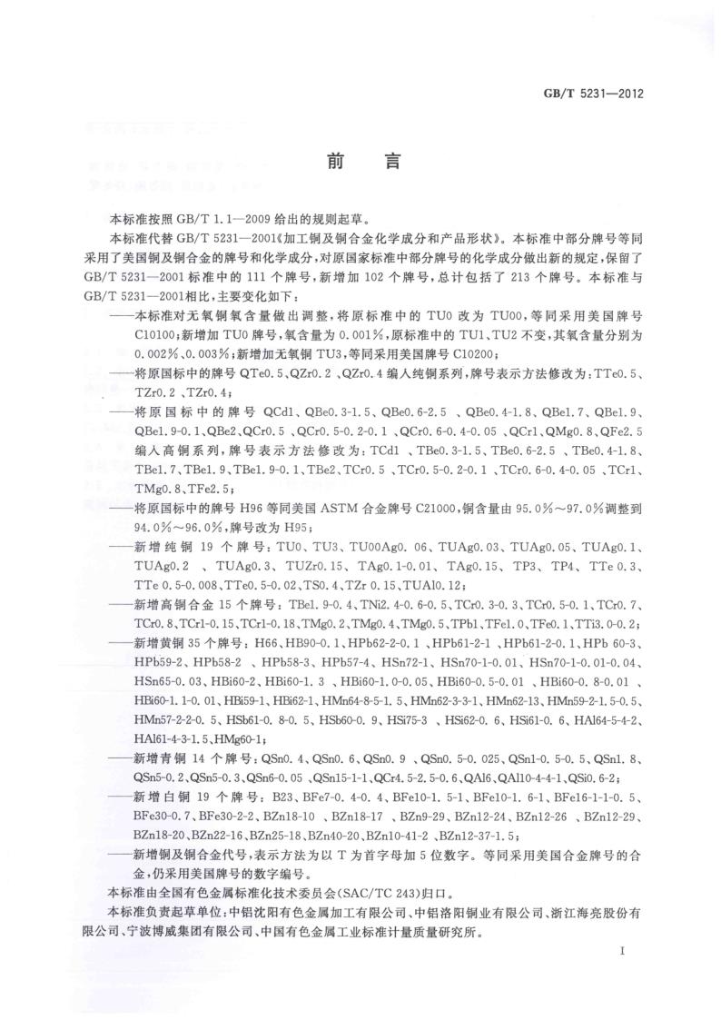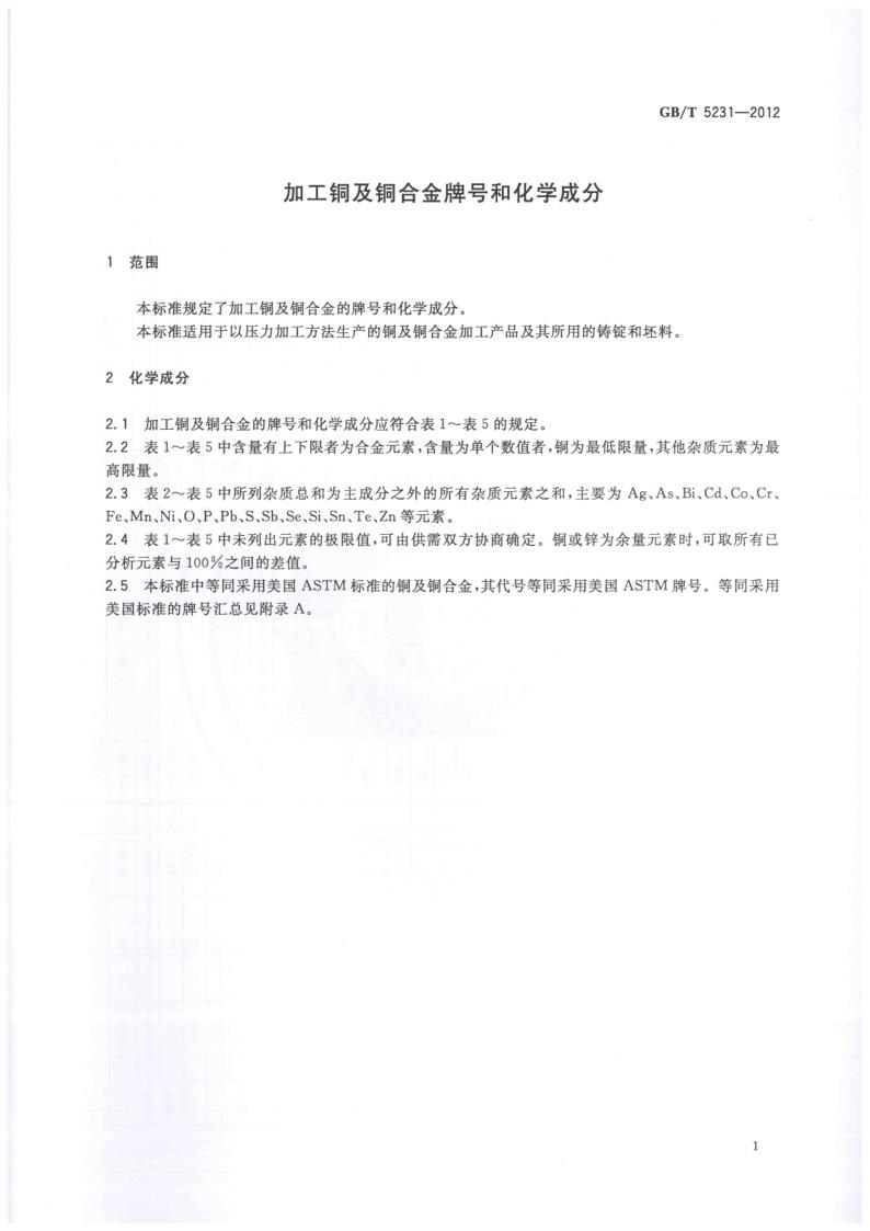 GBT 5231-2012 加工銅及銅合金牌號(hào)和化學(xué)成分
