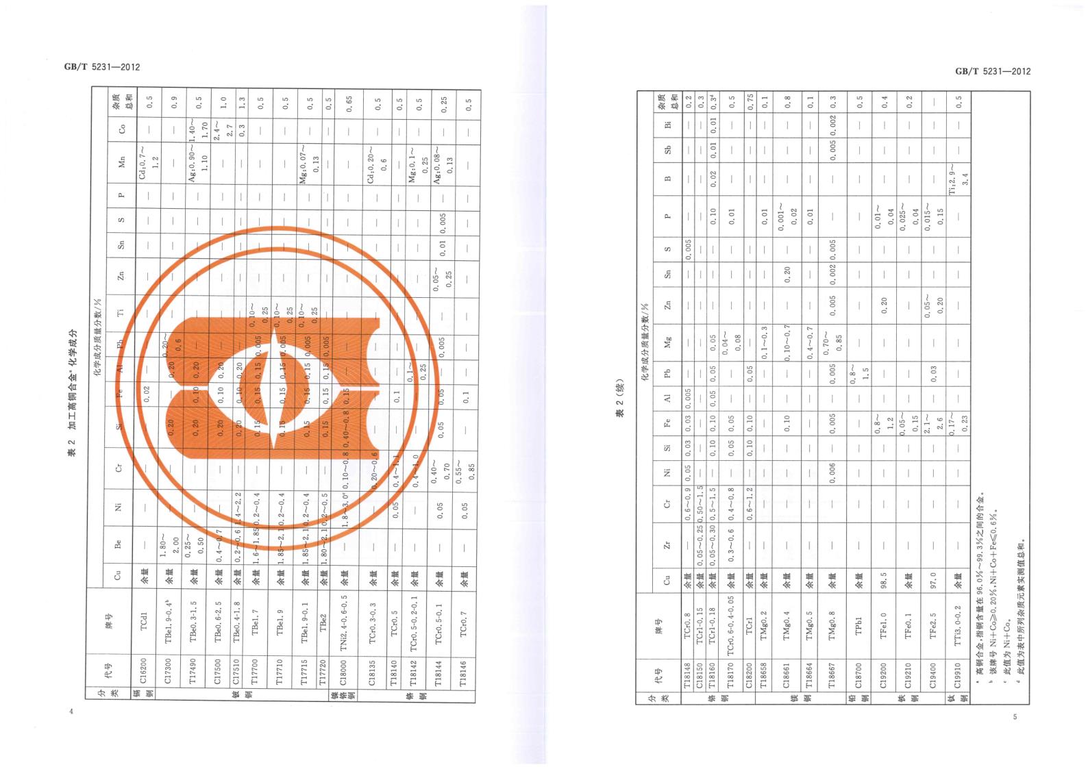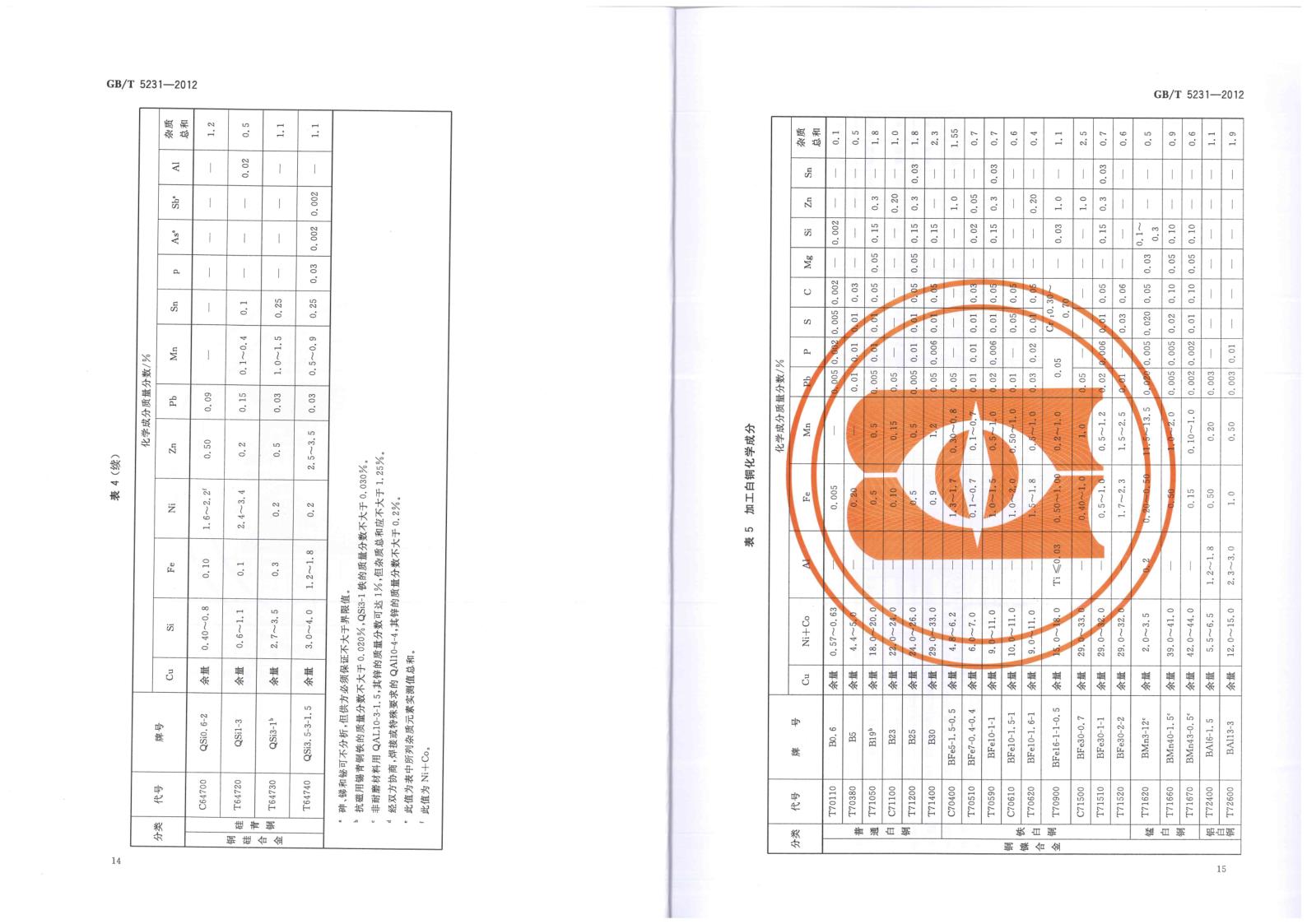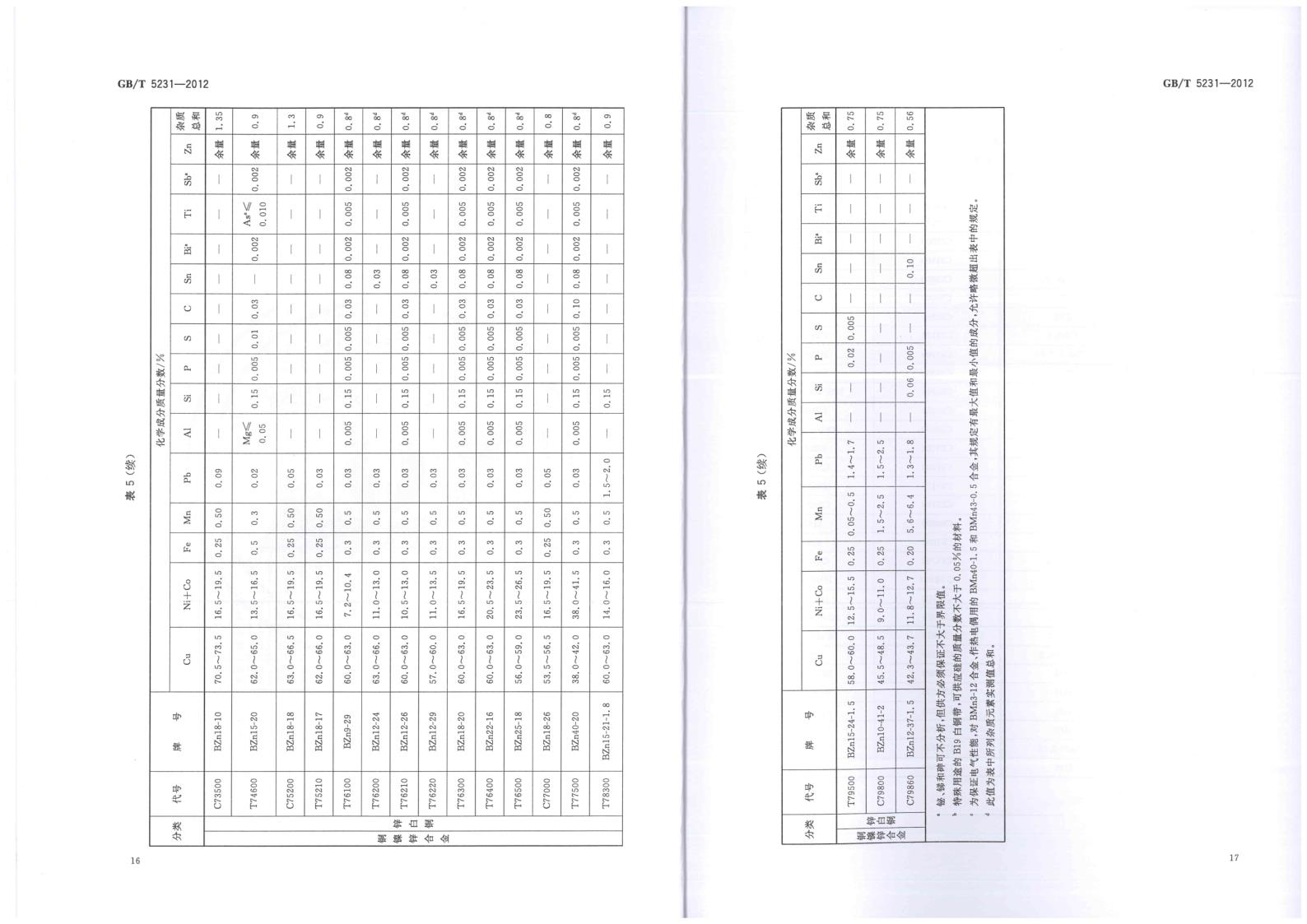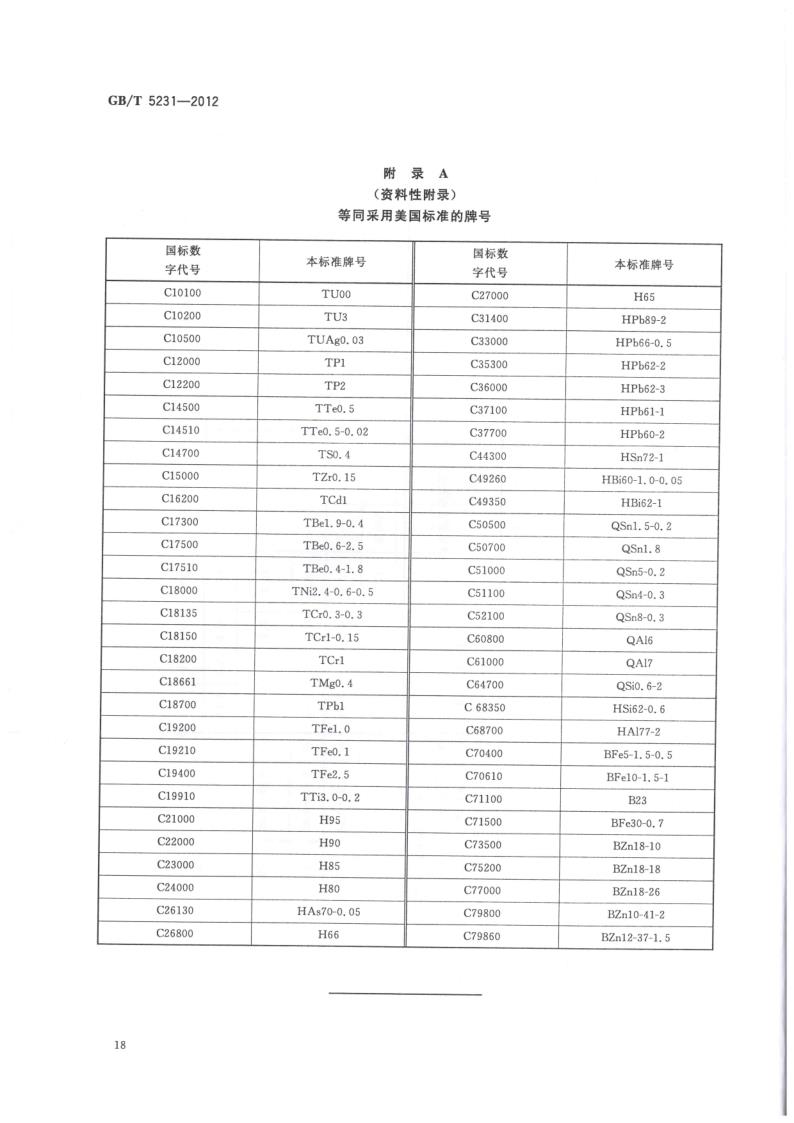 GBT 5231-2012 加工銅及銅合金牌號(hào)和化學(xué)成分